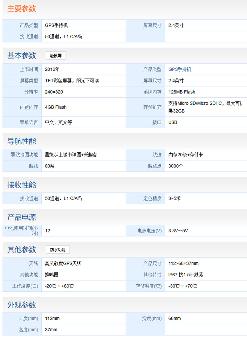 集思宝G138选用适合户外工作的工业级屏幕--2.4英寸TFT彩色屏幕,采用人性化的软件UI设计,屏幕在强阳光直射下依然清晰可见。128MB SDRAM,4GB Flash,支持TF存储卡扩展。IP67级防尘防水等级,满足恶劣的作业环境。内置全国详细地图,支持直线导航和智能导航(沿路导航),内置各种兴趣点信息,支持兴趣点查询和导航。