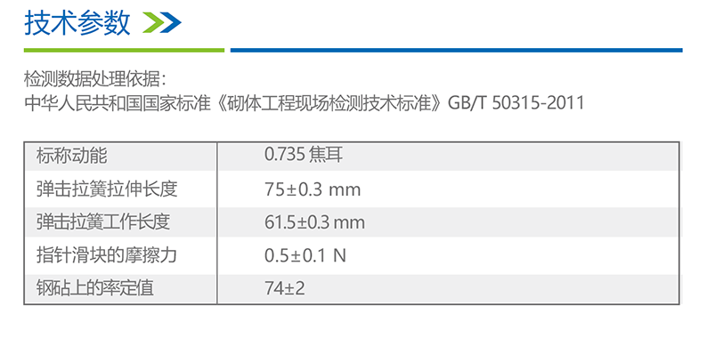 测砖回弹仪是用一弹簧驱动弹击锤并通过弹击杆弹击烧结普通砖砌体或烧结多孔砖砌体中砖表面所产生的瞬时弹性变形的恢复力,使弹击锤带动指针弹回并指示出回弹的距离,以此回弹值作
